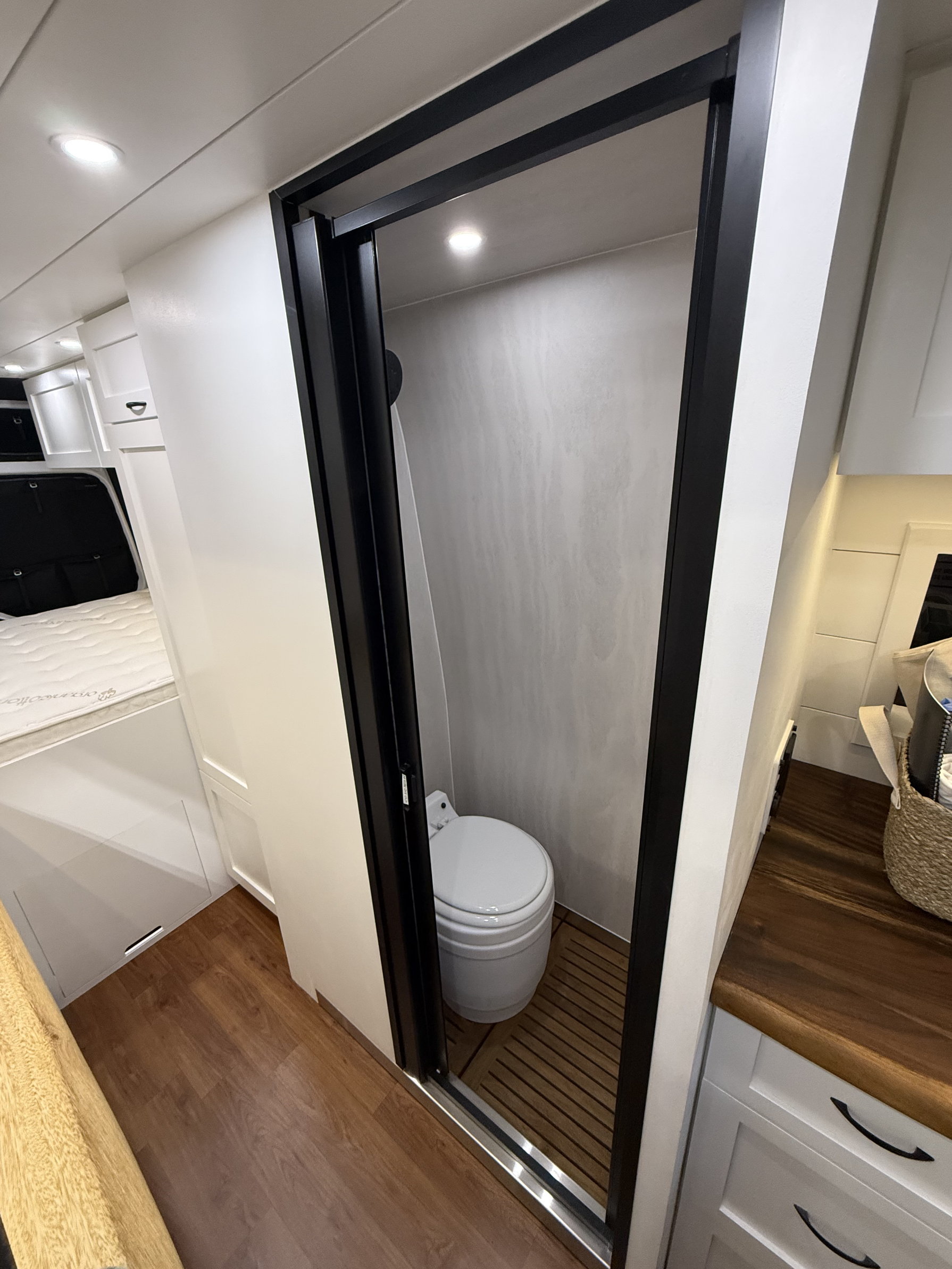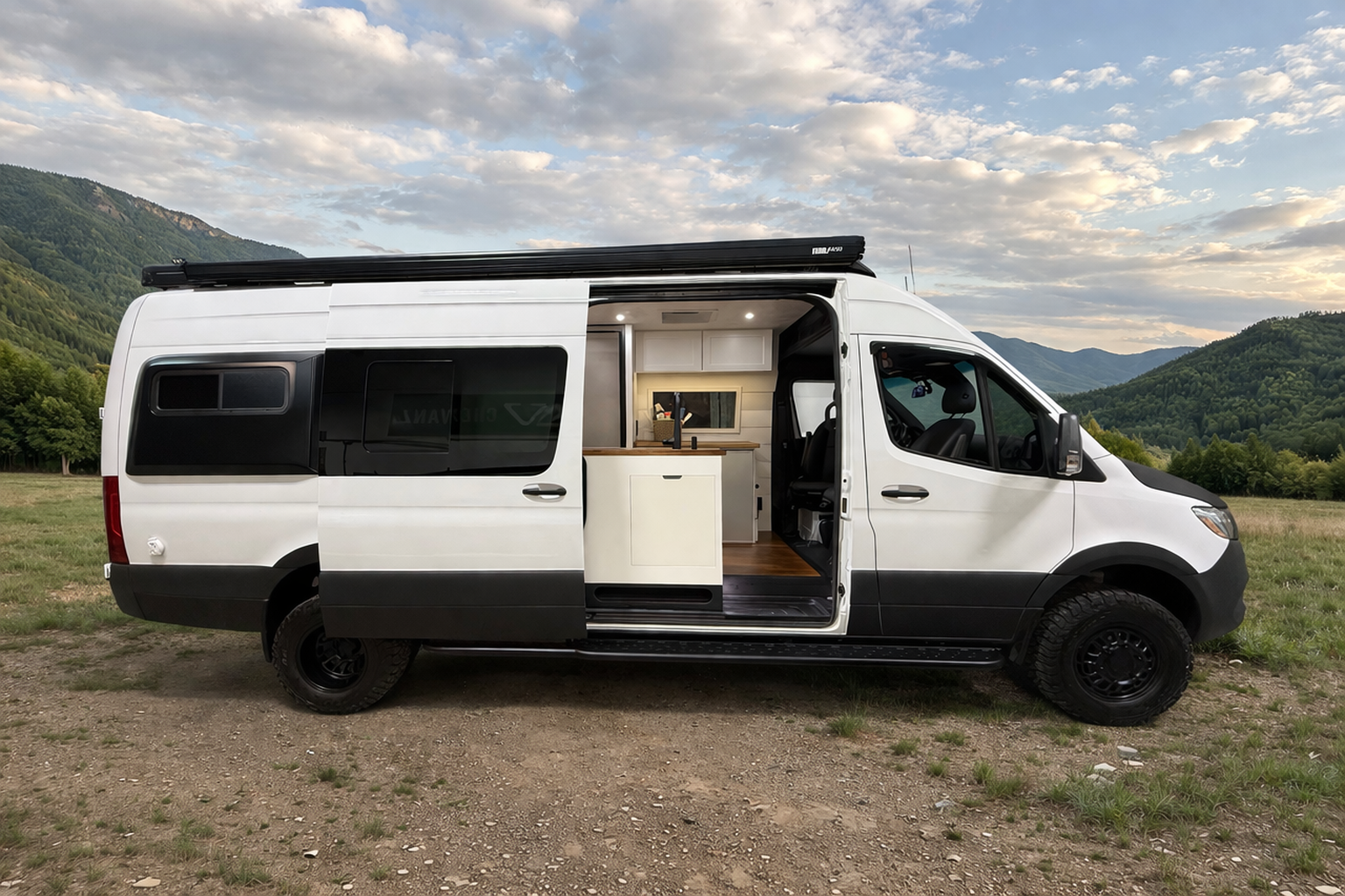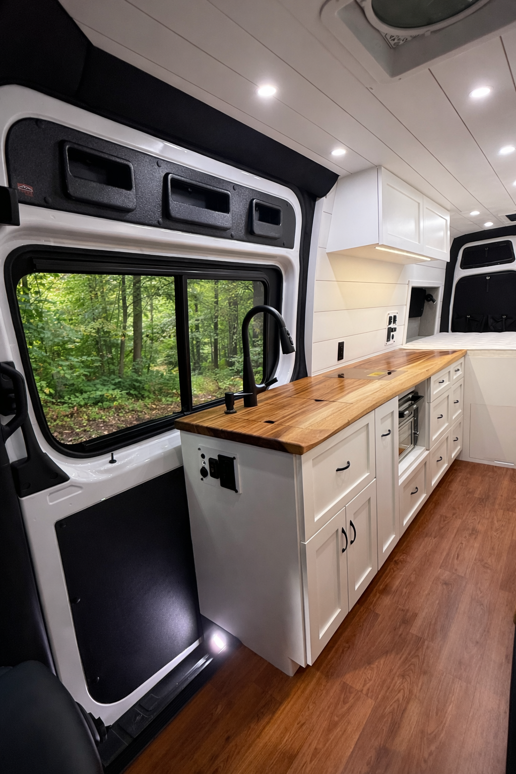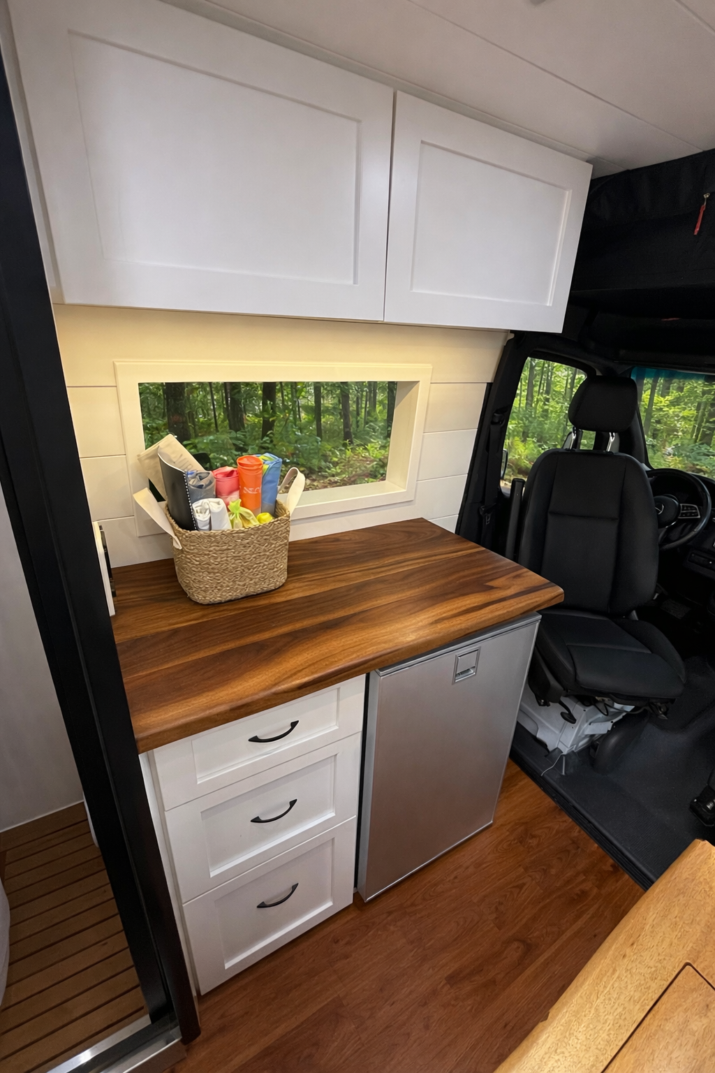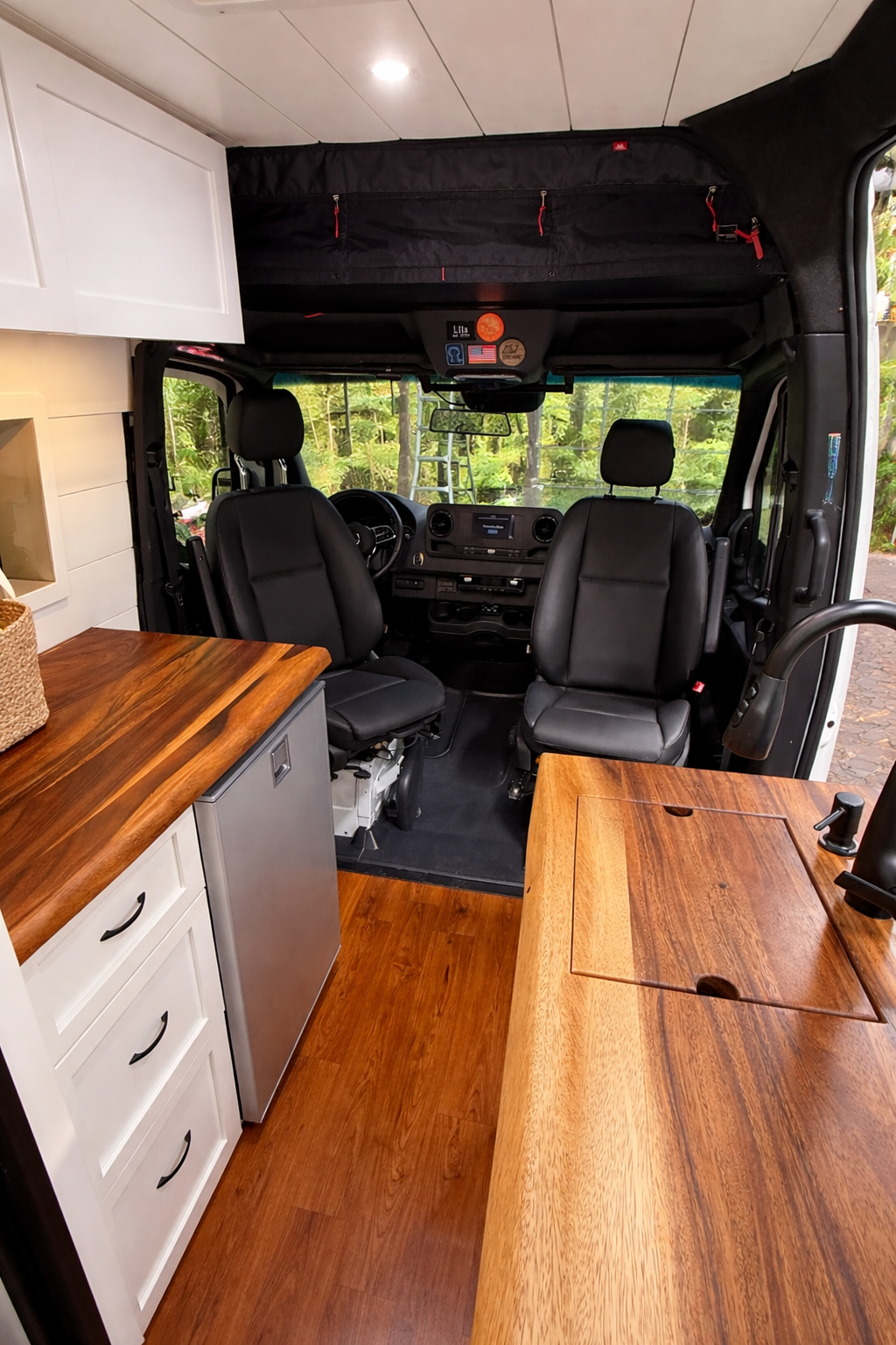 Every Friday, they shut the doors and leave the week behind. Their farmhouse-style van. Warm wood, soft linens, feels like home wherever they park it.